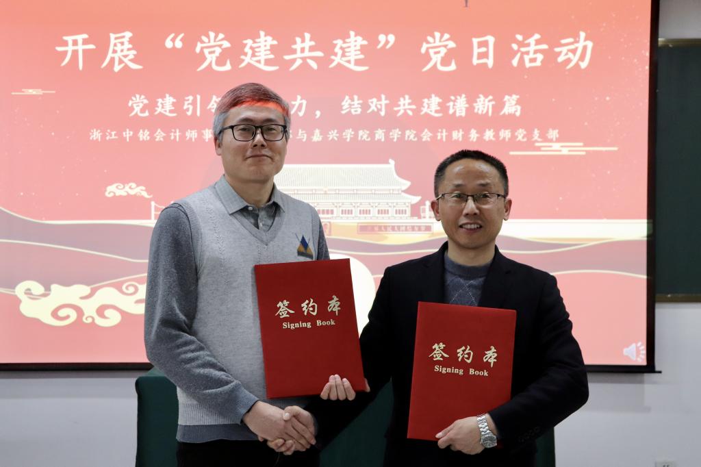 91短视频 会计财务教师党支部是浙江省第二批党建工作样板支部,中铭会计师事务所党支部是全国先进会计师事务所党组织及浙江省先进会计师事务所党组织,双方缔结党建共建联系,属于强强联合。双方表示,将发挥各自优势,以党建为引领,以人才培养和业务联系为纽带,进一步促进双方在专业实践、实习实训、学生培养、服务社会等方面的合作,努力构建“资源共享、优势互补、互相促进、共同提高”的党建工作新格局。