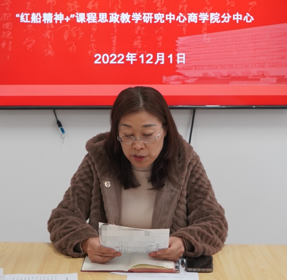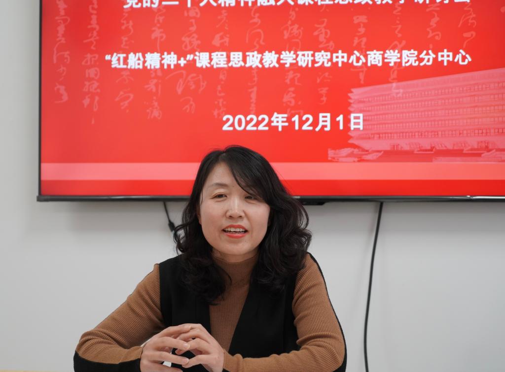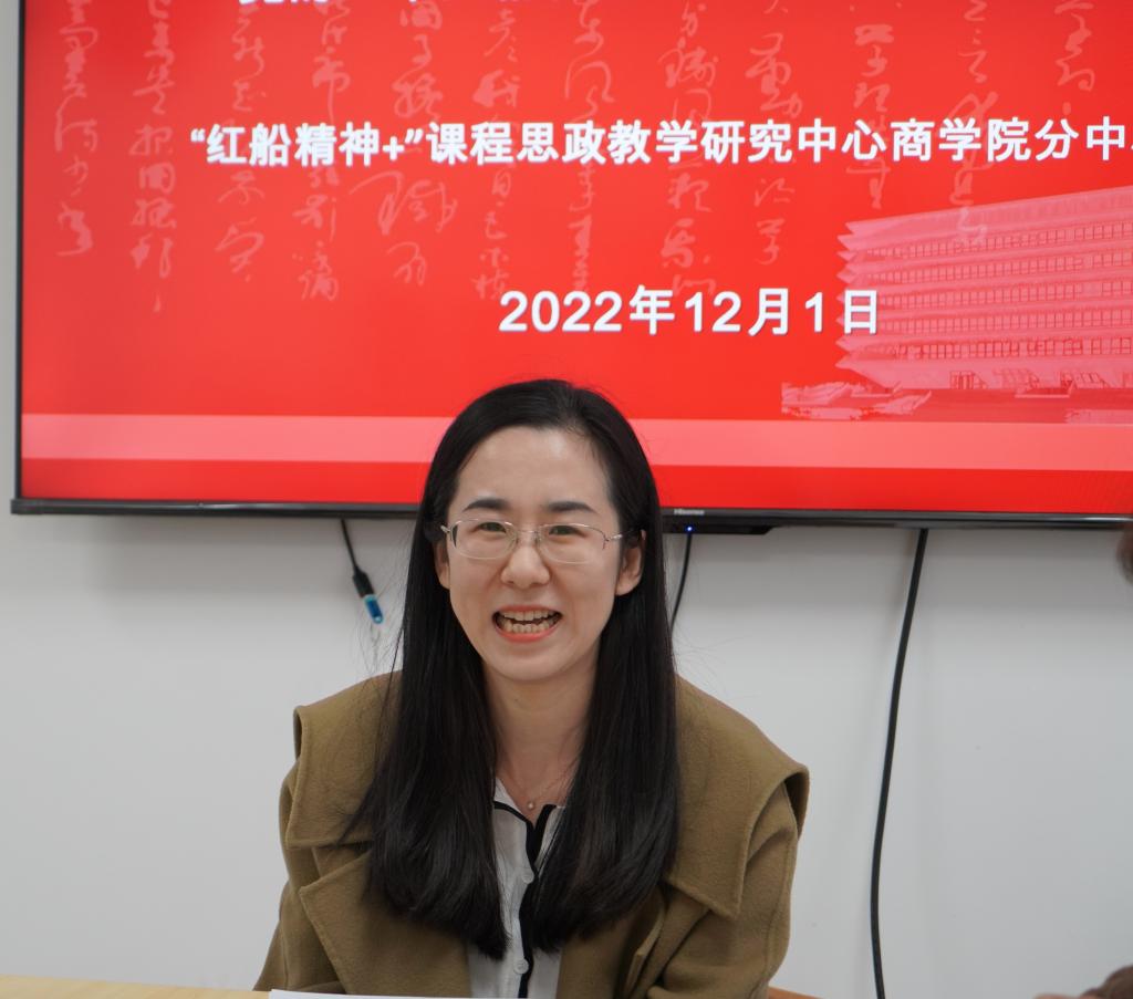 财务管理系主任董淑兰围绕财务管理专业课程思政校级教学团队建设,介绍了以课程组为基础,以课程为抓手,将合法合规教育、环境保护、“双碳”目标、企业社会责任等思政元素融入课堂,坚持做好“大思政课”的教学实践探索。市场营销系主任方芳介绍了嘉兴学院课程思政示范基层教学组织“营销课程群课程思政教学团队”建设自立项以来开展的工作,重点交流了把党的二十大精神融入课程思政,将理想信念、爱党爱国爱人民、社会主义核心价值观、法治精神、中华文化传统等元素渗透到教学各环节的思考。会计系赵春苗老师介绍了《高级财务会计》省级课程思政示范课程,在“红船引领、立德树人”的核心思想引领下,依托会计学国家级一流专业建设、省级虚拟教研室、互联网+会计一体化教学改革,创新“四位一体”教学体系,形成全过程育人的实践探索。人力系郭如平老师结合省一流课程《招聘与甄选》课程思政教学改革实践,介绍了如何把党的二十大精神融入课程、融进课堂,如何使学生在情感上、精神上产生共鸣,增强学生的认同感和同理心的做法。