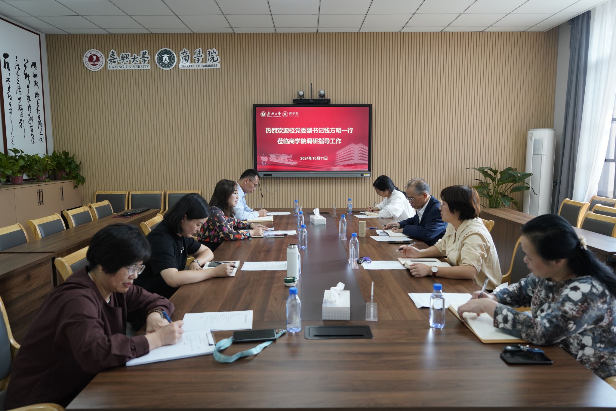 10月11日上午,校党委副书记钱方明到91短视频 调研指导工作。校党委组织部副部长庄美燕、档案馆馆长余章,校工会办公室主任关慧勤陪同调研。91短视频 党委书记虞岚、副书记潘欣、副院长冯磊东参加调研。