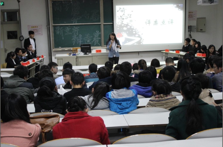比赛在主席的宣布下正式拉开帷幕。在正式决赛开始前,校辩论队的优秀辩手们就辩题“男辩手、女辩手谁更容易找到恋人”为观众们呈上一场风趣幽默的表演赛,迎得观众们的阵阵掌声,带动了现场的气氛。随后,决赛正式开始,作为正方的信息131班和作为反方的财务132班就辩题“一屋不扫是否可以扫天下”拉开舌枪唇战。陈词阶段双方引经据典、立论清晰。质询和自由辩论阶段把现场气氛推向了高潮,双方辩手针锋相对、妙语迭出,引起观众们的喝彩与掌声。经评委们的商定,学生评委于戈就比赛中双方辩手表现加以点评,指出存在的问题,并对本次比赛给予肯定。