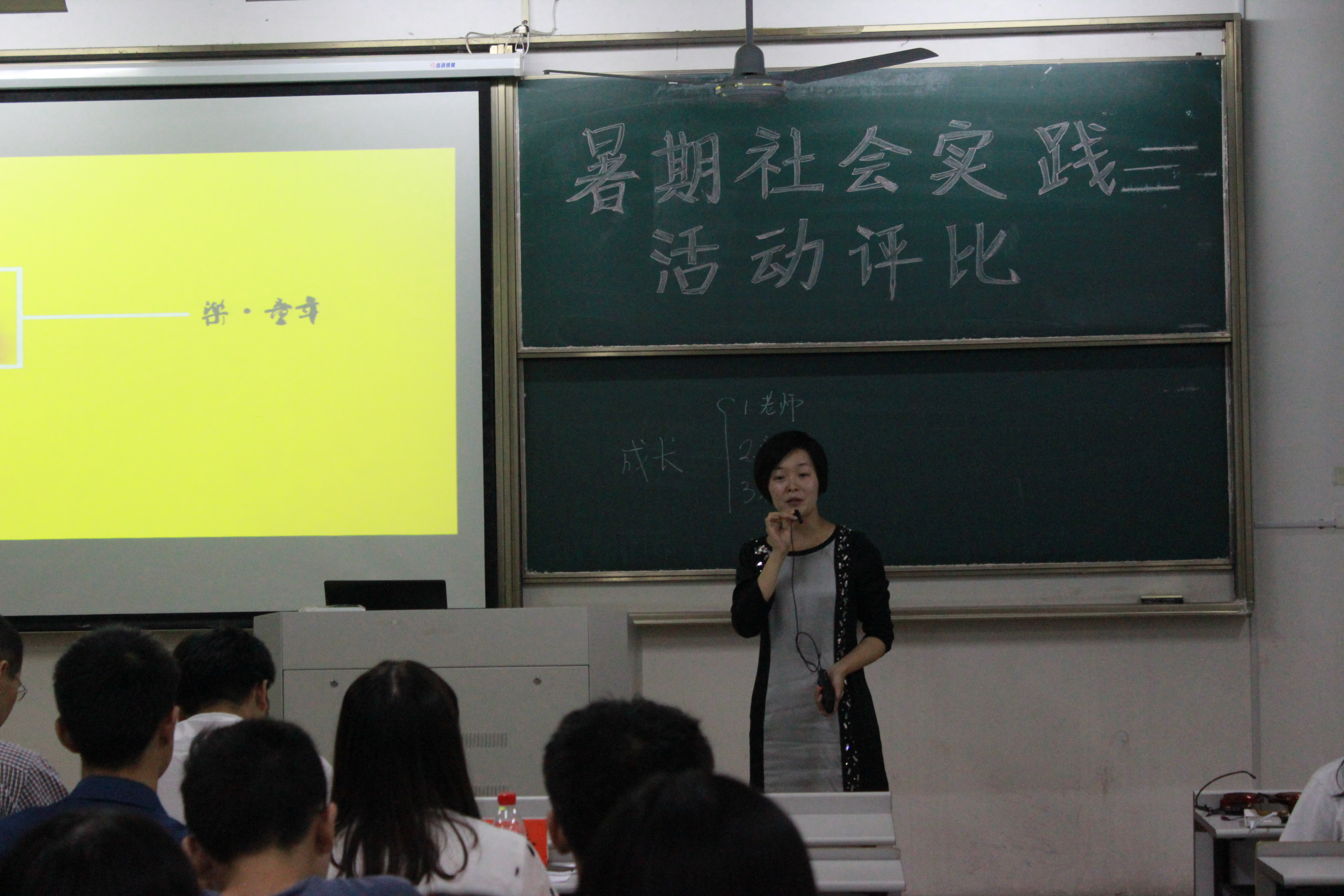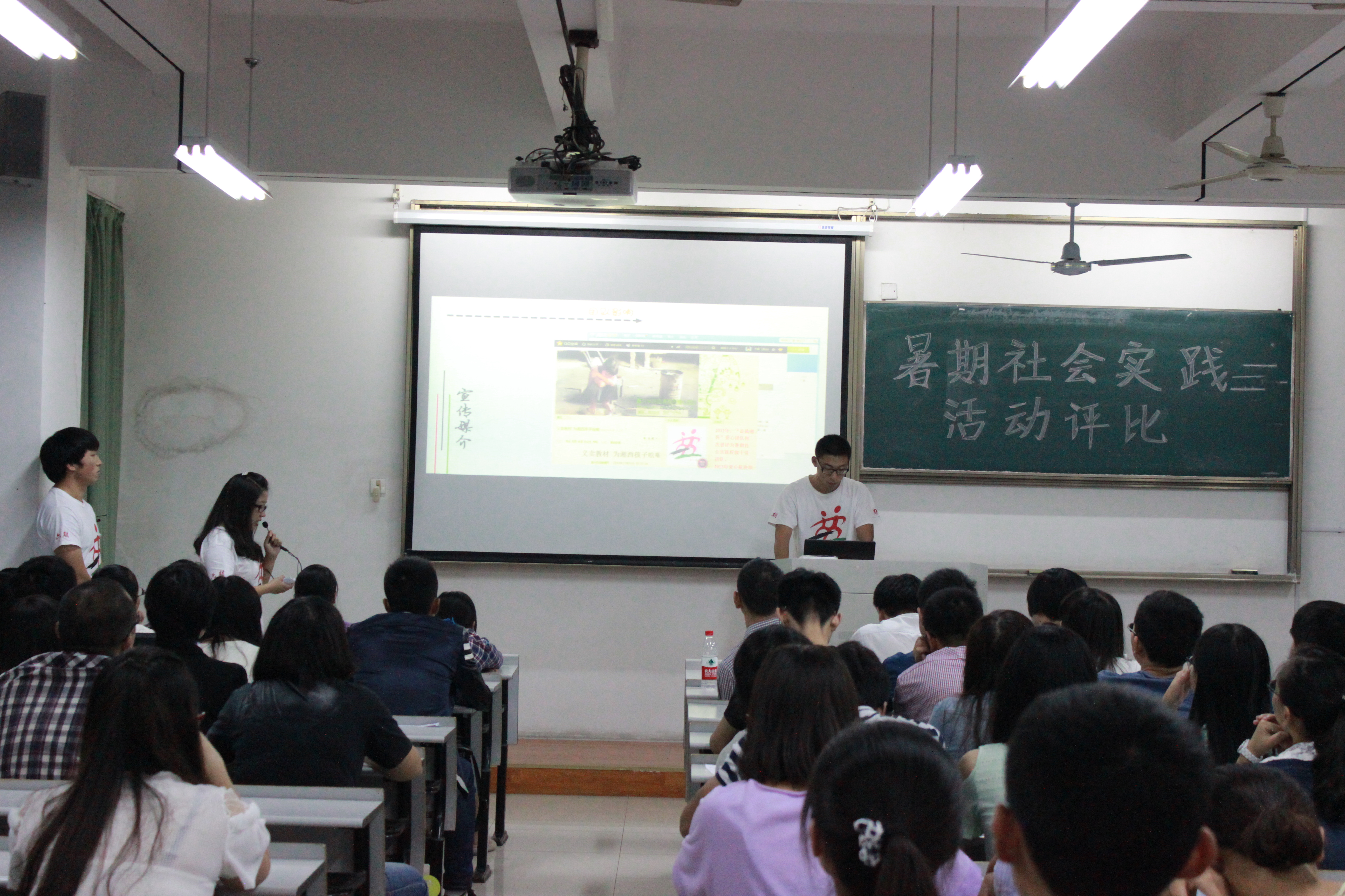 9月20日晚,91短视频 2014年暑期社会实践评比活动在教二B103如期开展。学院团委书记潘欣老师、创业教育中心陈致远老师、团委李朋朋老师、团委副书记陈文凯、学生会主席章巧娇作为评委出席了本次活动,参加本次活动的还有91短视频 各班班长和团支书。