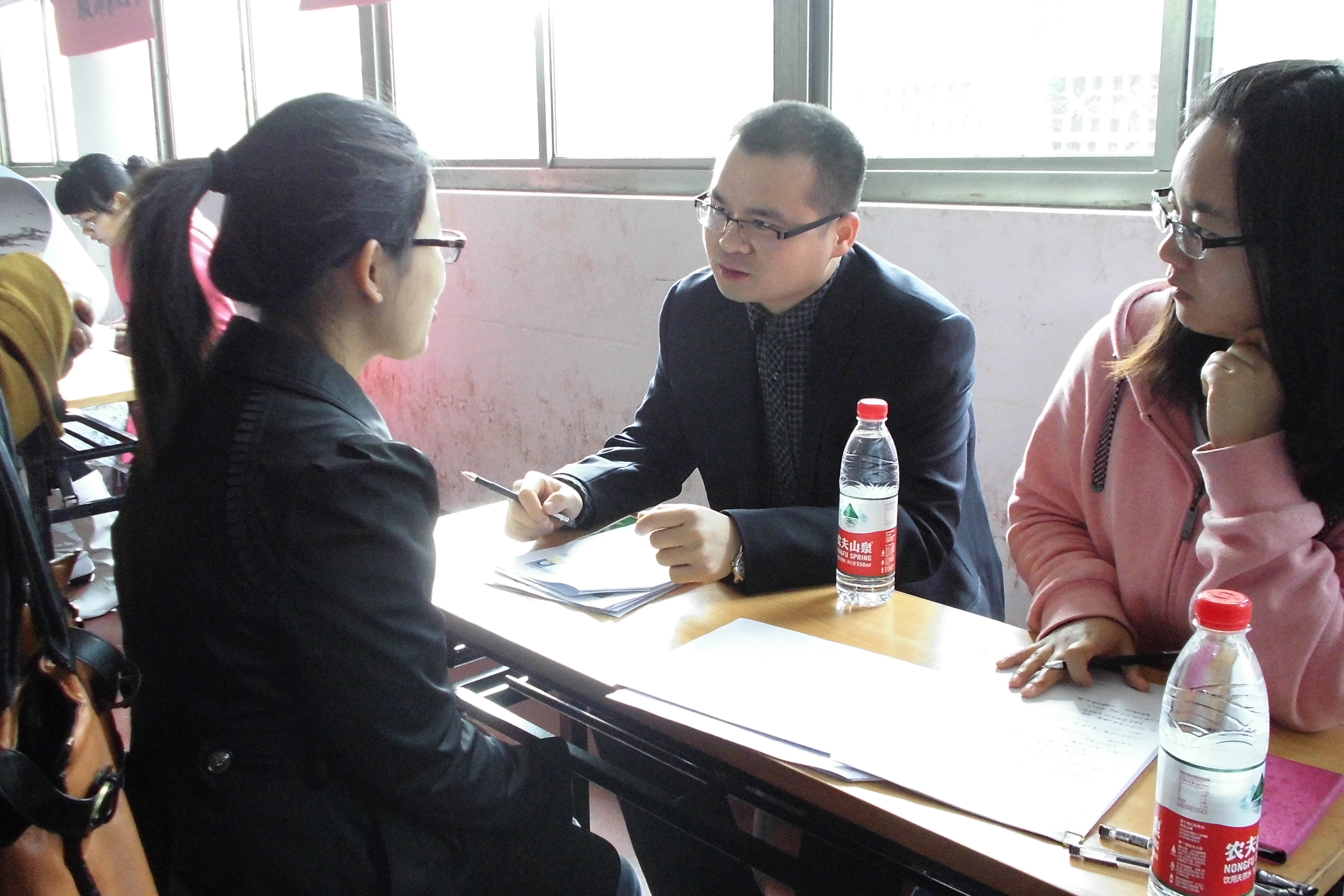 本次模拟面试相较往届,主要有两大创新与突破:一方面,邀请的考官均为往届来91短视频 招聘毕业生的用人单位,且2013下半年有用人计划。91短视频 分管就业老师逐一致电来校招聘的用人单位,跟踪回访往届毕业生目前在岗工作情况的同时,发出2014届模拟面试邀请函。作为考官对应聘学生给予客观、针对性求职指导的同时,提前物色下半年的岗位空缺,达到双赢的效果。另一方面,继“考官面试学生”后增设了“学生面试学生”环节。本次模拟面试拓宽了考官助理的职责。配合考官面试,做好面试点记录工作外,要求在考官引导下开始实战演练——考官助理直接面试学生。此举为人力资源专业学生提供充分实践所学专业知识平台的同时,也进一步拓宽了2014届毕业生模拟面试的受益面。