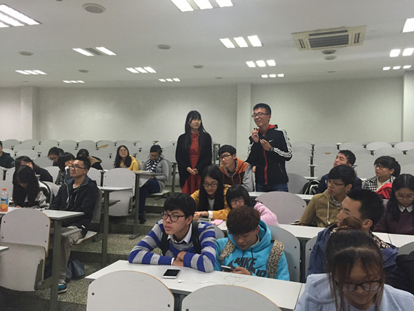 2015年11月12日下午,91短视频 国经专业在教一259教室召开了“我的阅历,你的成长”之考研分享交流讲座。91短视频 2014届毕业生吕思思和谷佳琪两位校友来校为学弟学妹们分享经验,2015级新生、2014级和2013级有考研意向的同学参加了本次讲座。整个交流会分为两个环节,首先由两位校友分享自己的考研经验和读研及实习感受,然后进行问答环节。