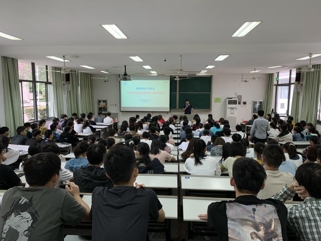 会计学系2020级师生见面会暨专业认知教育在教二A126举行。学院院长、会计学专业负责人潘煜双教授,会计学系全体专任教师、辅导员、助理辅导员和2020级新生参加见面会。见面会由会计学系主任崔晓钟主持。