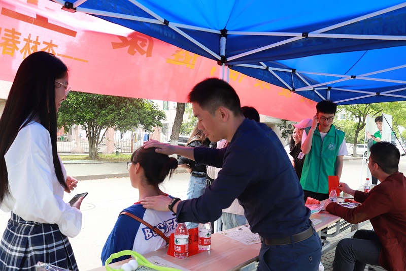 牵头成立的“杏林春暖”大学生医院志愿服务联盟首次集体亮相,开展了以“关爱颈椎,健康生活”为主题的志愿服务活动。浙江新安国际医院脊柱科副主任王凌斌、嘉兴市中医院主治中医师朱高峰和付源鑫应邀来校开展讲座和义诊,来自全校600余名同学参加了活动。