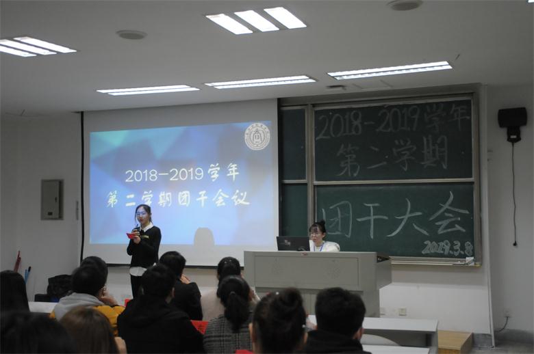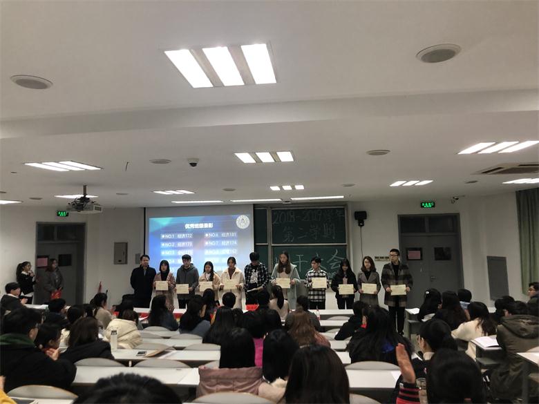 班团考核十佳班级的通知》,对经济172,经济181,经济173,经济174,会计171,公管162,经济171,经济161,信息182,公管161等10个优秀班集体进行了表彰。优秀班集体代表经济171班和信息182班在会上进行了班团工作经验分享。会上,团委副书记骆祎卿、学生会主席金嘉琪还分别就团学上一学期各项工作进行了总结回顾,对本学期团学工作计划进行了逐一说明。