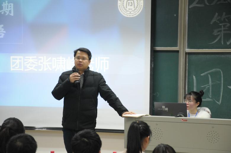 张啸峰充分肯定了上一学期全院各班级团支部的工作表现,系统介绍了学校志愿服务接下来的工作思路与目标,重点强调了班团考核、五四评优、青马班培训、学代会等本学期团学主要工作。他指出,2019年是学校攻坚克难之年、申硕决胜之年、创大奠基之年,希望全院团学干部高度重视,紧紧围绕学校学院中心工作,努力夯实基层团支部工作基石,为学校申硕创大建一流贡献自己的青春力量。