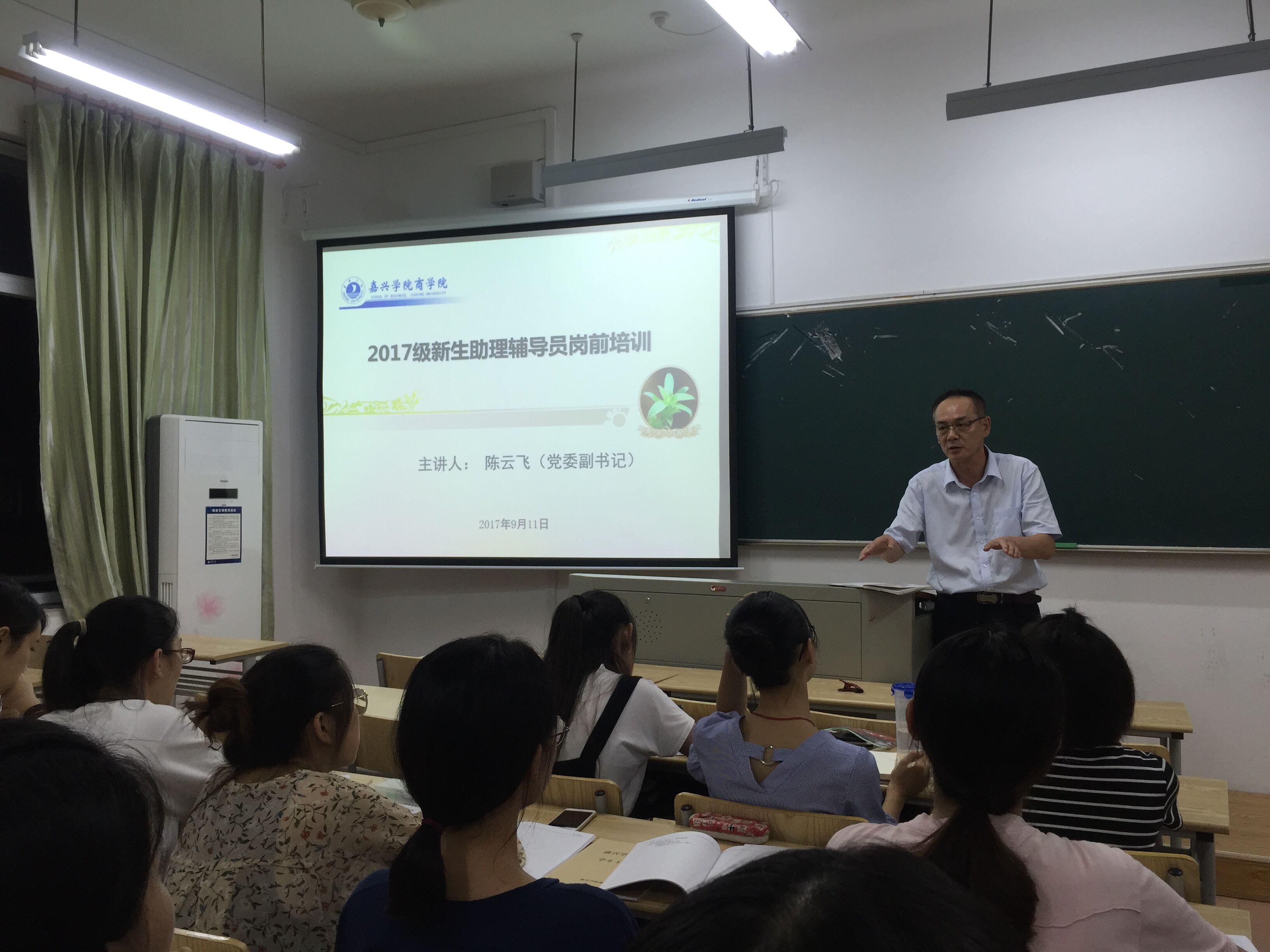 学工办组织开展了2017级新生班助理辅导员岗前培训工作。学院党委副书记陈云飞主持了本次培训会,全体2017级助理辅导员参加了培训会。