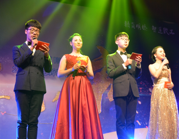 党委书记施敏颖老师在晚会上致辞,辞旧迎新之际回顾了过去的一年,并对学院提出了新的期望。随后,商院团学人带来的活泼可爱的玩偶舞《Joker》迅速点燃了现场。金融163的心理情景剧《幸福一直在》催人泪下,话剧社的小品《我家孩子叛逆期》令人捧腹不已。悠扬动听的歌曲、婀娜多姿的民舞、出神入化的魔术、时尚个性的走秀,让人叹为观止。商院的老师们也毫不逊色,舞蹈《塞西莉亚》,尽显青春活力。最后,一首由王焕祥老师创作,潘煜双老师、王焕祥老师、吴恺中和奚旖旎两位同学领诵的《商院颂》道出了每位商院师生的心声与向往,将晚会推向高潮。“学院沧海何时发,愿为你早生华发。早生华发又何妨,愿得一路撒书香,书香里阅尽来日辉煌……”
