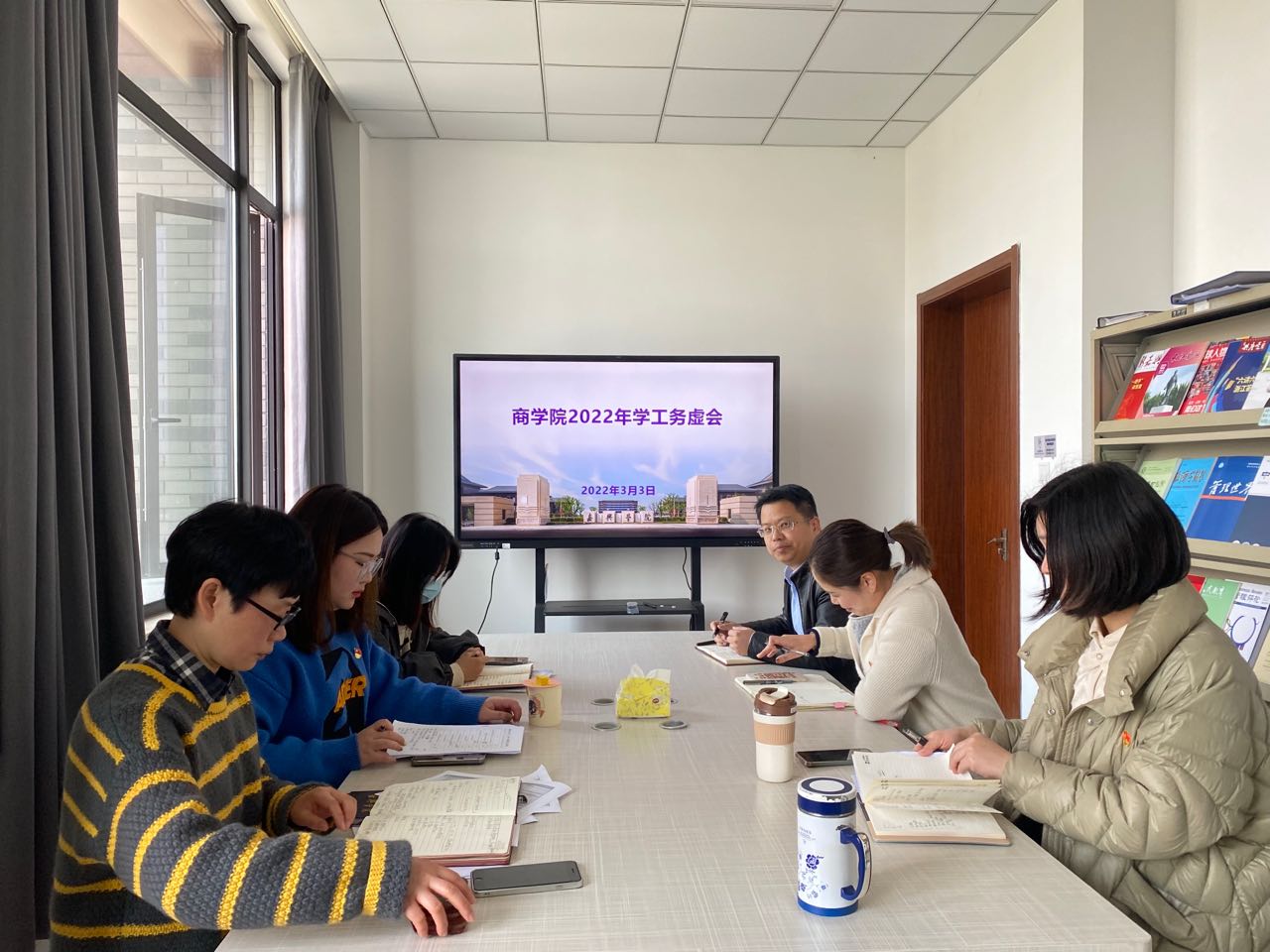 在尚德楼356会议室召开2022年学生工作务虚会。学院党委书记邵燕、副书记潘欣,以及全体辅导员参加了会议。