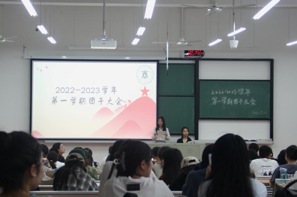 2022-2023学年第一学期团干大会在明德楼134教室顺利举行,学院团委副书记李雨嘉、团学主要学生干部、团学各部门负责人、各团支部全体团干部参加会议。