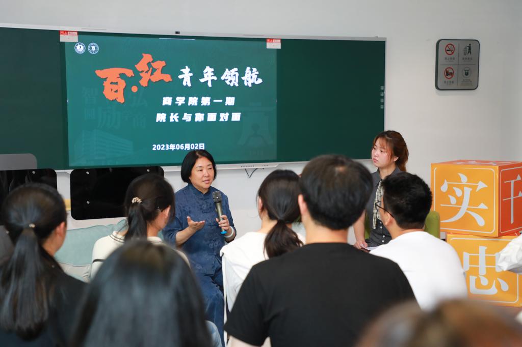 的全体同学要坚守百年精神文化底蕴,勇担责任和使命,于“励学”处下苦功,在“弘商”中练本领。在面对面交流中,潘煜双还跟同学们分享了她个人30余年的学习与工作经历。她鼓励同学们要有“咬定青山不放松”的韧劲,“不破楼兰终不还”的拼劲,不问收获,只管耕种,把手头的事情做到最好,因为现在,连着未来。