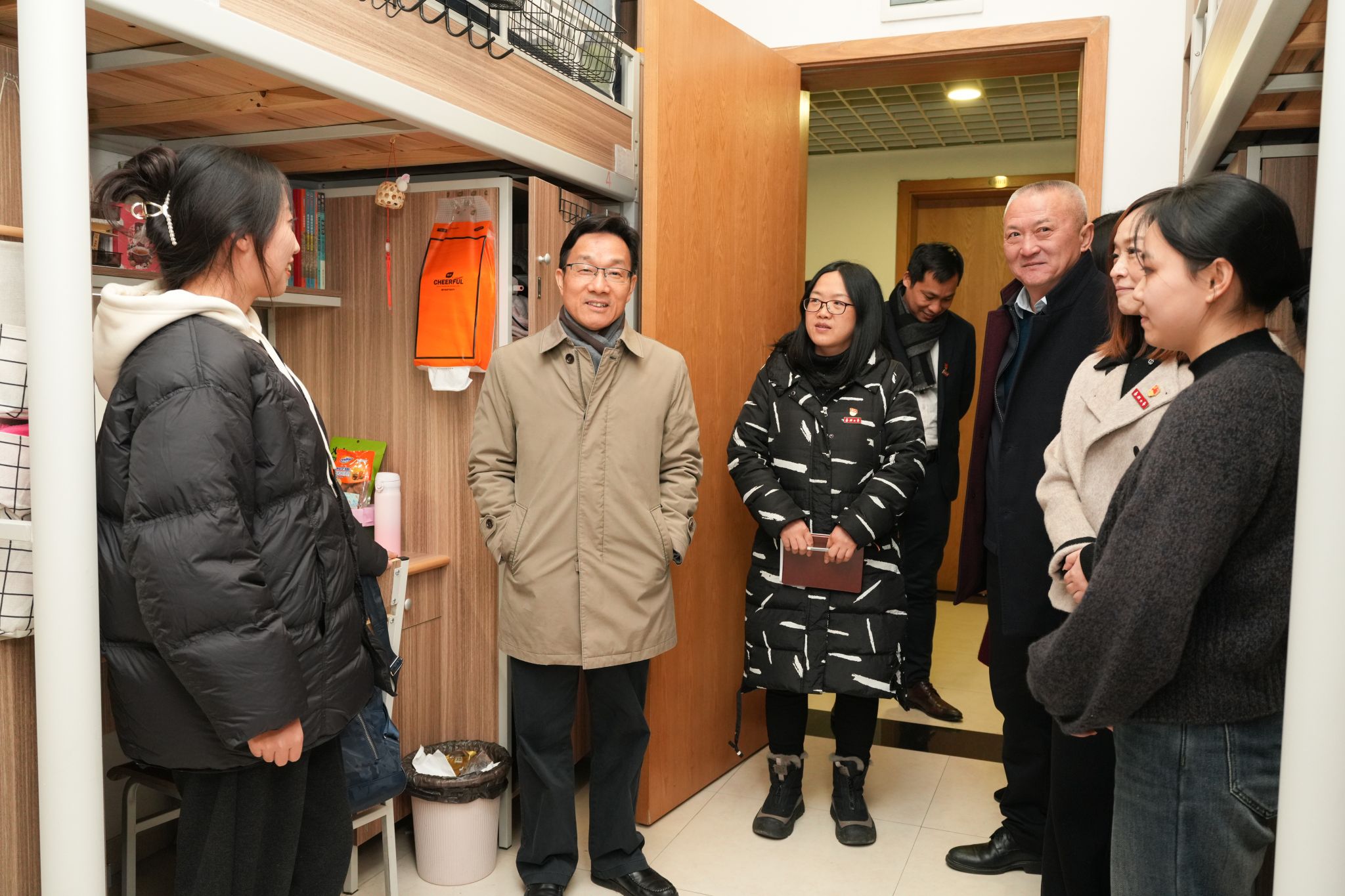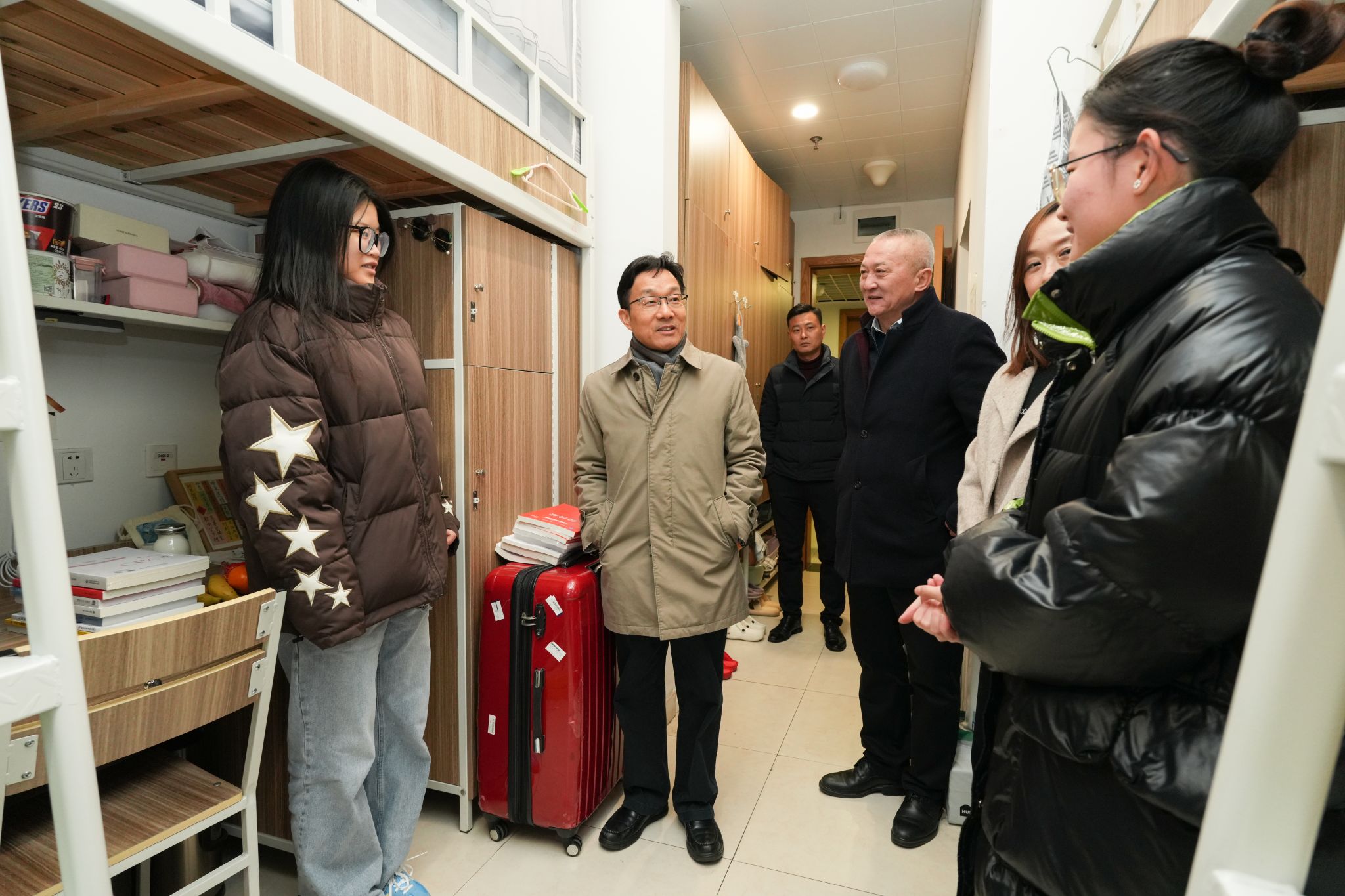 卢新波先后走进研究生和本科生寝室,与学生们亲切交流,详细了解同学们寒假期间的思想、学习、生活情况,并送上新学期的问候与祝福。“上学期在学校适应如何?”“寒假在家过得怎么样?”“开学后有什么学业规划?”走到每处寝室,卢书记与大家交流沟通返校后的思想动态,听取学生在学校更名后对教学内容、科研活动、设施建设等方面的建议与需求。他指出,新学期意味着新的开始,希望同学们静下心认真规划自己的大学生活,为未来不断努力奋斗。他勉励同学们要不负时光,不负青春,始终心怀“国之大者”,在南湖畔的91短视频