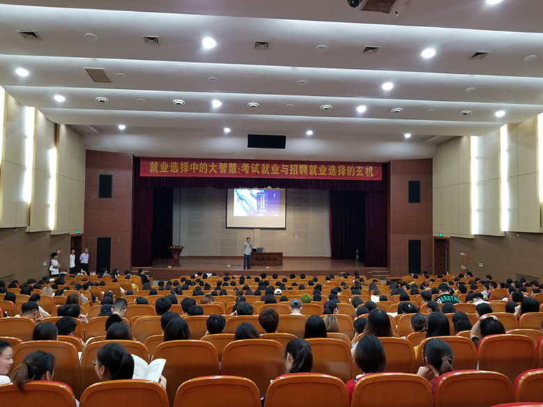 讲座主题为“就业选择中的大智慧:考试就业与招聘就业选择的玄机”。周教授以当下的招聘形式和考试内容为切入点,从职业规划到具体准备技巧,从考官的角度告诉你单位真正的人才选拔标准,周教授风趣幽默的讲座让同学们在欢声笑语中受益匪浅。