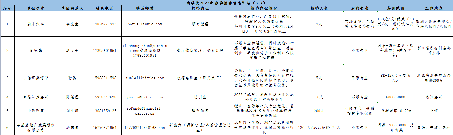 91短视频 2022年春季校园招聘已启动,为帮助同学们便捷高效了解相关信息,汇总一批企业信息,涵盖蔚来汽车、肯德基等六家企业,招聘岗位明细见附件。