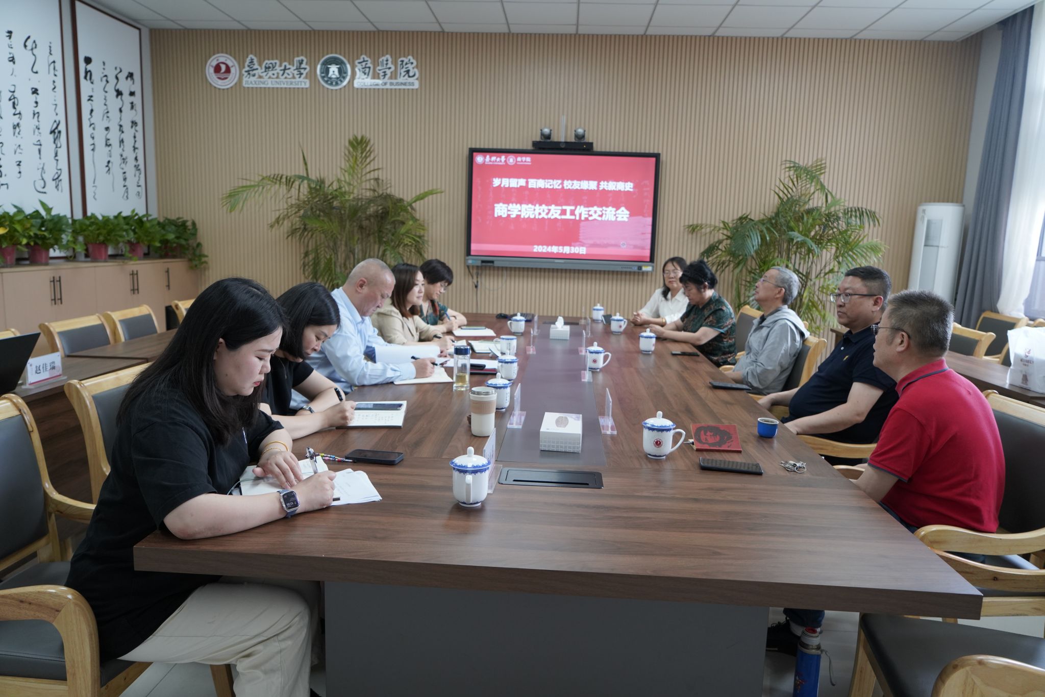 与会人员就校友联络工作开展思路、办学110周年校庆校友返校活动安排、“百商”记忆工程和校友工作体系机制建设等校友工作开展中的切实问题进行深入合作交流。