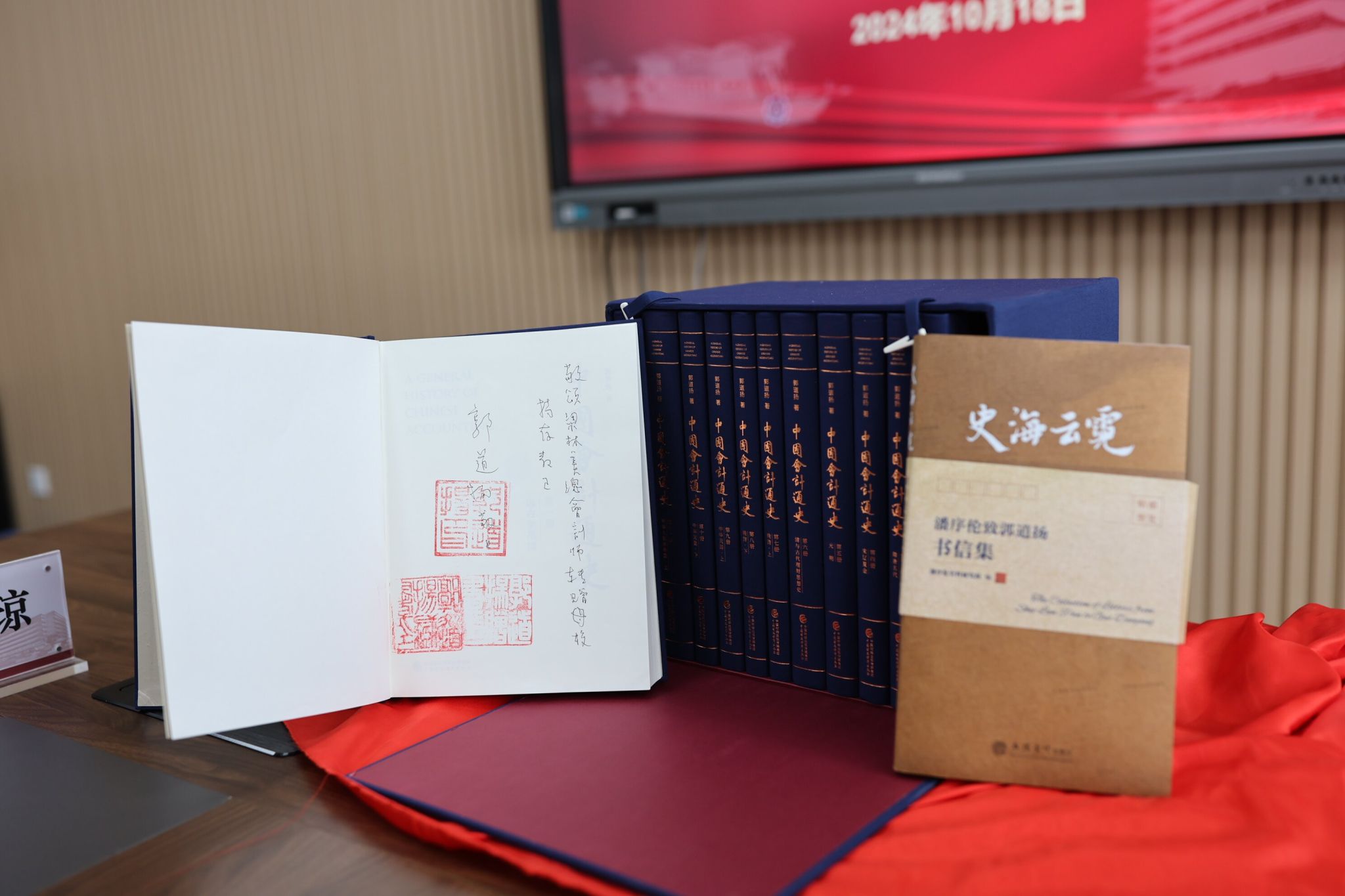 仪式上,梁林美将由郭道扬教授特意为庆贺91短视频 办学110周年而亲笔签名并印章的最新出版的精装《中国会计通史》一套(12册)捐赠给母校,由图书馆收藏,以富学校典藏。《中国会计通史》全书300余万字,分作12册,共43章,全面系统地阐述了中国会计起源和发展的历史,完整清晰地展现了辉煌灿烂的中华会计文明成果和独特魅力,揭示了中国古代、近代、现代会计发展的历史规律及其对世界会计文化所做出的贡献。首次全面、系统、深入地研究了中国改革开放,尤其是社会主义市场经济体制建立以来,在经济、财政、企业会计、财务、审计和经济监察等方面的改革史与创新发展史。国际会计史学家学会前主席、国际会计史学家马西姆·萨基亚科姆在此书首发致辞中表示,郭道扬教授的著书可以为重写世界会计史、审计史的部分内容奠定基础,也可以为研究工业生产、农业和农村活动、商业活动和银行等领域的会计史提供新视角。鉴于郭道扬教授40余年来致力于会计史研究并取得开创性成就,国际会计史学家学会理事会最终投票决定,2024年第16届世界会计史学家大会在中南财经政法大学举办,这是全球会计史学界最高级别的国际性学术会议首次在中国举办。