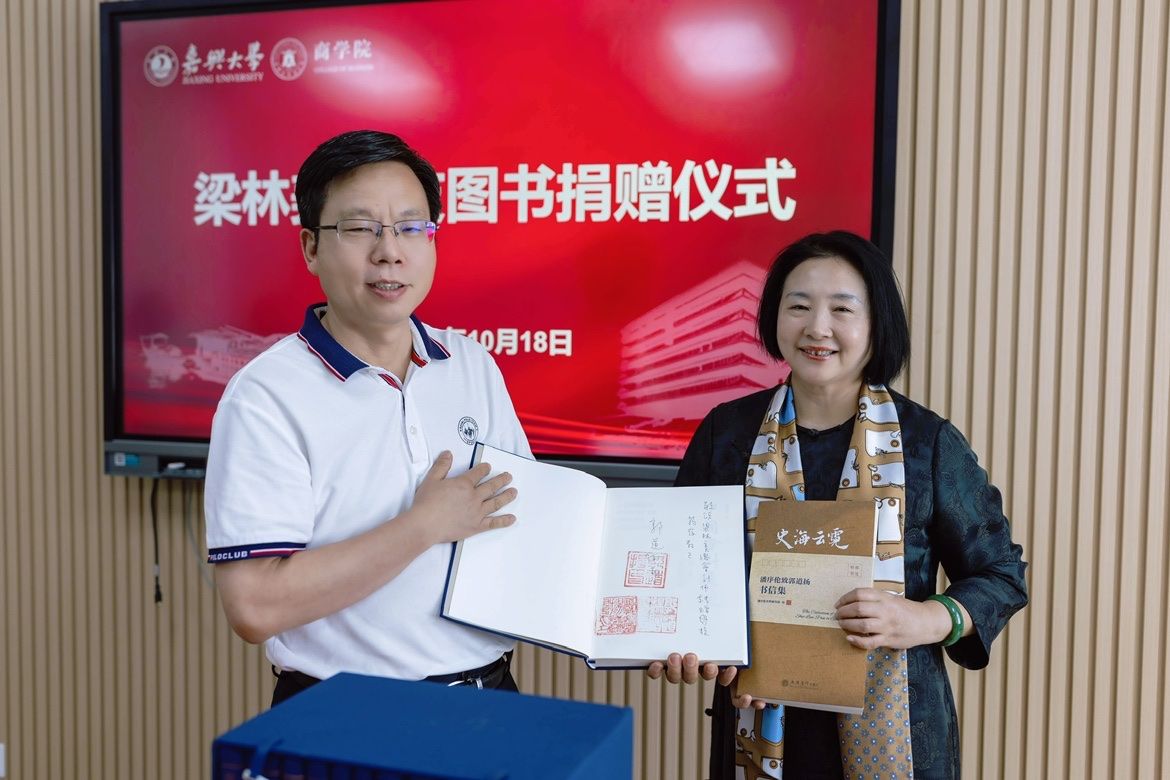 吕延勤首先对校友的到来表示欢迎,他感谢校友这么多年始终关心关注学校的发展,对母校情真意切。他指出,高质量的专业书籍是高等教育机构不可或缺的资源之一,它们能够促进知识传播、激发创新思维,并且加强师生之间的交流互动。希望未来能有更多像梁林美校友这样心系教育事业的人士参与到支持高校建设和发展中来。