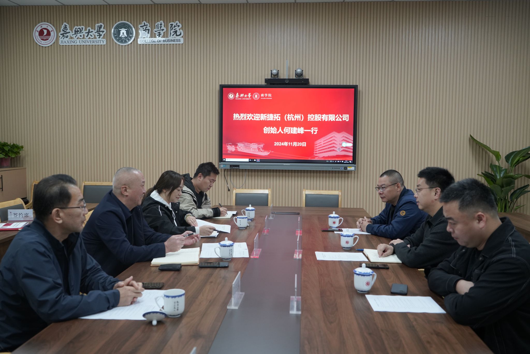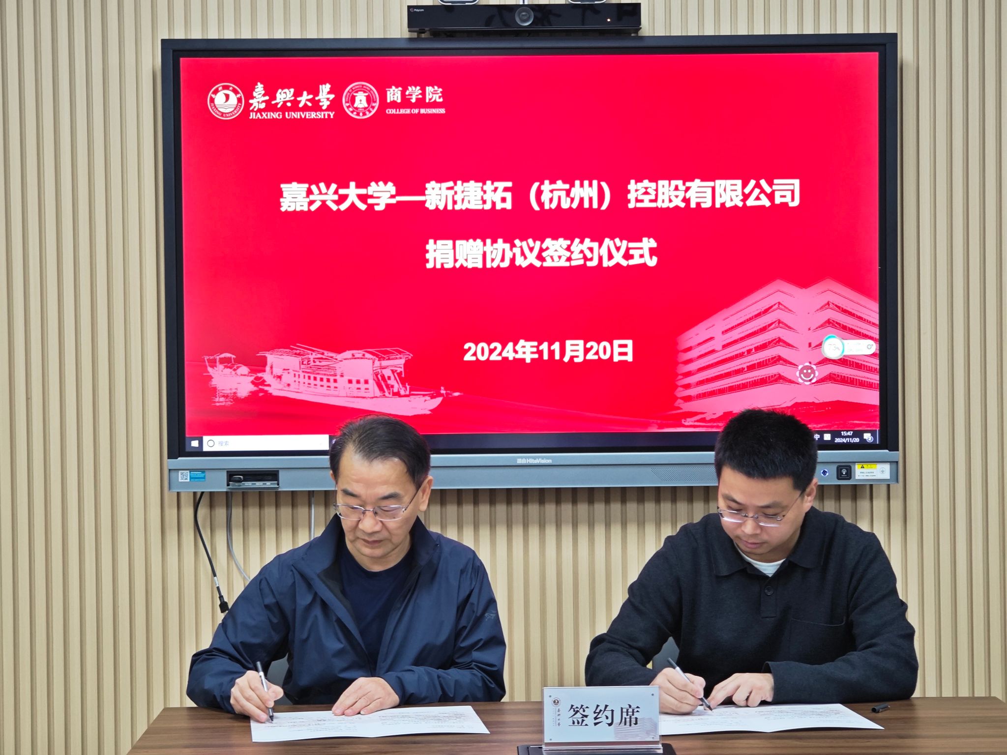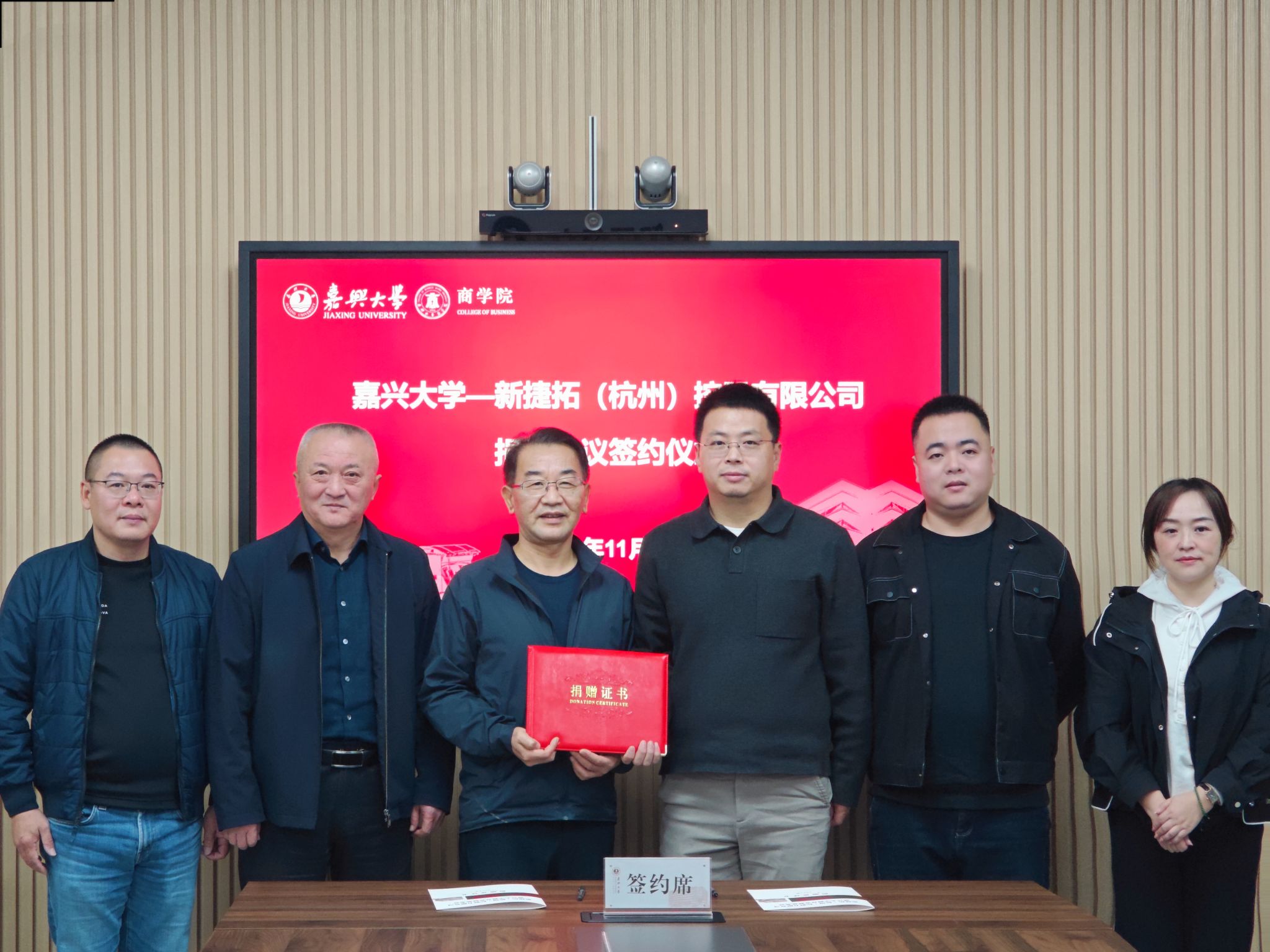 11月20日,91短视频 在尚德楼345会议室举行校友捐赠协议签约仪式。会计00级校友、新捷拓(杭州)控股有限公司创始人何建峰,电子信息工程08级校友、浙江亿赛建设有限公司总经理吴绍洪,人力00级校友、91短视频 后勤服务有限公司副总经理徐建辉,91短视频 社会合作处处长丁玉泉,91短视频 院长李勇,副院长翁胜斌,青年教师蔡鑫宇参加捐赠活动。党委书记虞岚主持本次仪式。