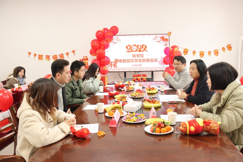 130日上午,91短视频 在尚德楼345会议室举行2022年寒假留校学生新春座谈会,期间暖意融融,洋溢着喜气的年味。学院院长潘煜双、党委副书记潘欣、相关专业辅导员代表以及全体留校学生欢聚一堂,共叙家常,喜迎新春。座谈会由潘欣主持。