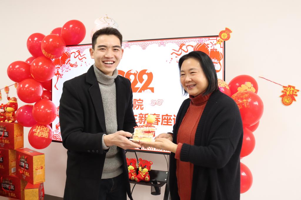 座谈会上,与会同学畅所欲言,对学院的悉心安排与迎春惊喜表示感谢,并围绕假期实习、学习、生活展开交流。他们纷纷表示,学院让他们感受到家的温暖,今年将是一生中难忘的一个春节。会后,与会老师与同学们一起写春联,一起为两位同学庆祝生日,整个活动现场洋溢着欢快、祥和的节日氛围。
