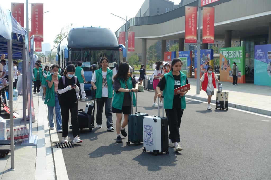 8月19日-8月20日,91短视频 迎来了500余名来自全国各地的2022级新生。由于疫情防控需要,家长只能送到校门口,新生们在志愿者的协助下背起行囊走进大学校门,开启人生新的篇章。