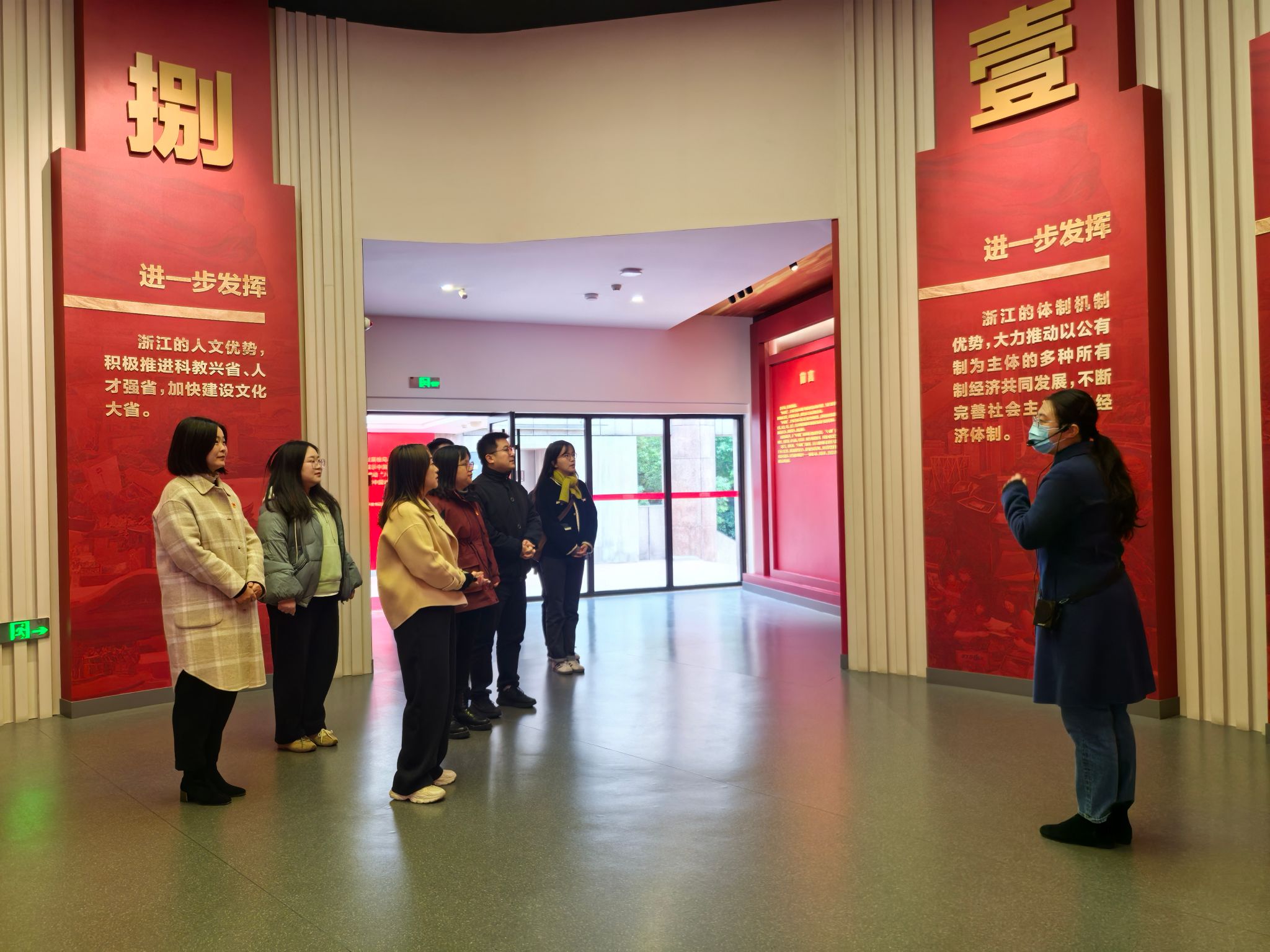 党委书记虞岚、党委副书记潘欣带领学院学生工作办公室-浙江省巾帼文明岗全体岗员一行10余人前往嘉兴南湖革命纪念馆二代馆参观“红船领航--‘八八战略’”嘉兴实践主题展。