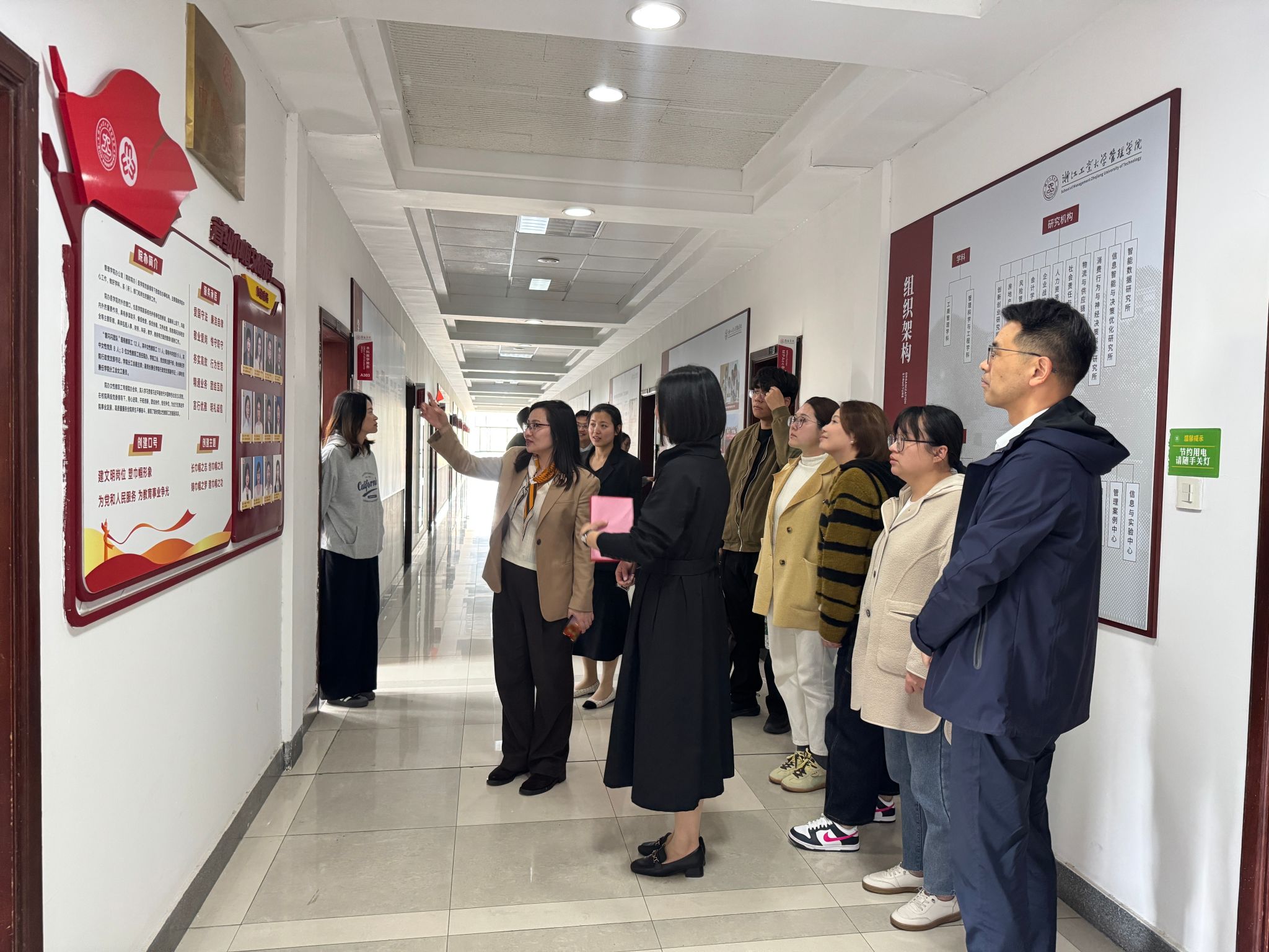 在“管闪闪”省级巾帼文明岗负责人的陪同下,我院一行实地参观了该岗位的建设阵地。据悉,“管闪闪”省级巾帼文明岗是依托学院办公室,在党委、妇联领导下的学院综合办事机构,主要围绕学校学院中心工作,助力“双一流”建设,潜心服务育人,在教学、科研、人事、财务、外事等方面提供管理与服务。