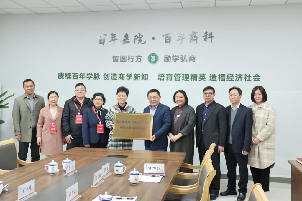 会上,王申峰、胡俊云共同为嘉兴学院会计硕士(MPAcc)研究生联合培养基地授牌。潘煜双与市财政局会计管理处处长、市注协册会计师协会副会长兼秘书长李伟还就嘉兴学院会计硕士(MPAcc)研究生联合培养基地签署合作协议书。双方还就财会人才培养、留禾就业等工作展开深入交流。