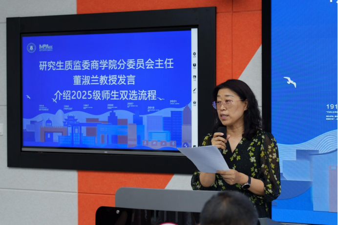会议伊始,崔晓钟介绍了会议议程及参会老师随后,研究生质监委91短视频 分委会主任董淑兰教授介绍了2025级会计硕士师生双选流程,并寄望同学们以高标准完成每一项学业任务——不论是课程学习、实习实践,还是毕业论文的选题、研究与答辩,做高标准、严要求的受益者、践行者和维护者。