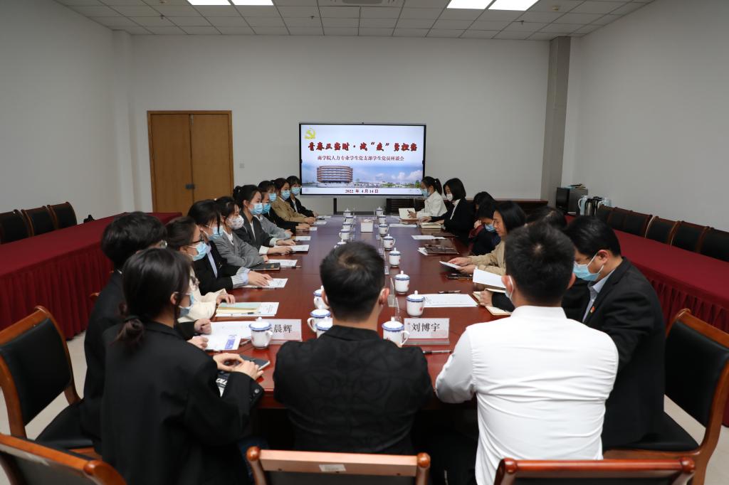 414日下午,校党委书记卢新波到91短视频 与结对党支部师生党员代表开展“青春正当时·战‘疫’勇担当”主题座谈会。校党委办公室主任王立玮、校党委宣传部常务副部长陈立力,91短视频 党政领导以及人力专业学生党支部师生党员代表参加座谈。座谈会由91短视频 院长潘煜双主持。