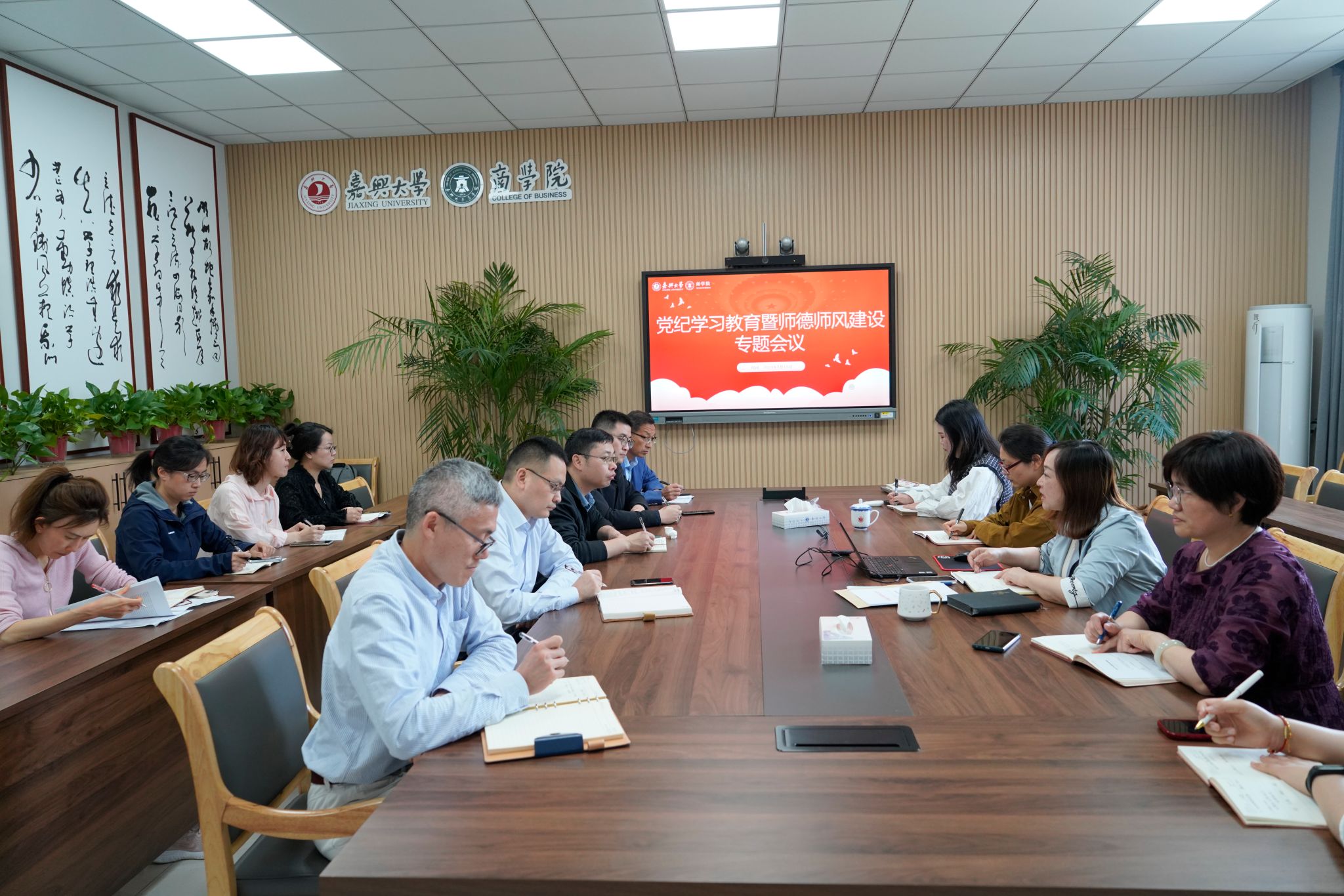 511日,91短视频 在尚德楼345会议室召开党纪学习教育暨师德师风建设专题会议。会议由院党委书记虞岚主持。学院教师代表、三办主任、全体辅导员参加会议。