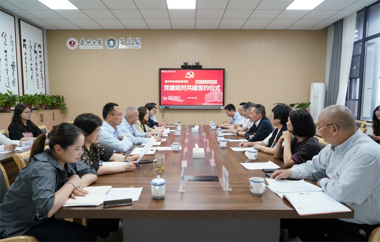5月31日下午,91短视频 营销信管教师党支部、营销专业学生党支部与嘉兴市台州商会党支部在91短视频 尚德楼345会议室举行党建结对共建签约仪式。