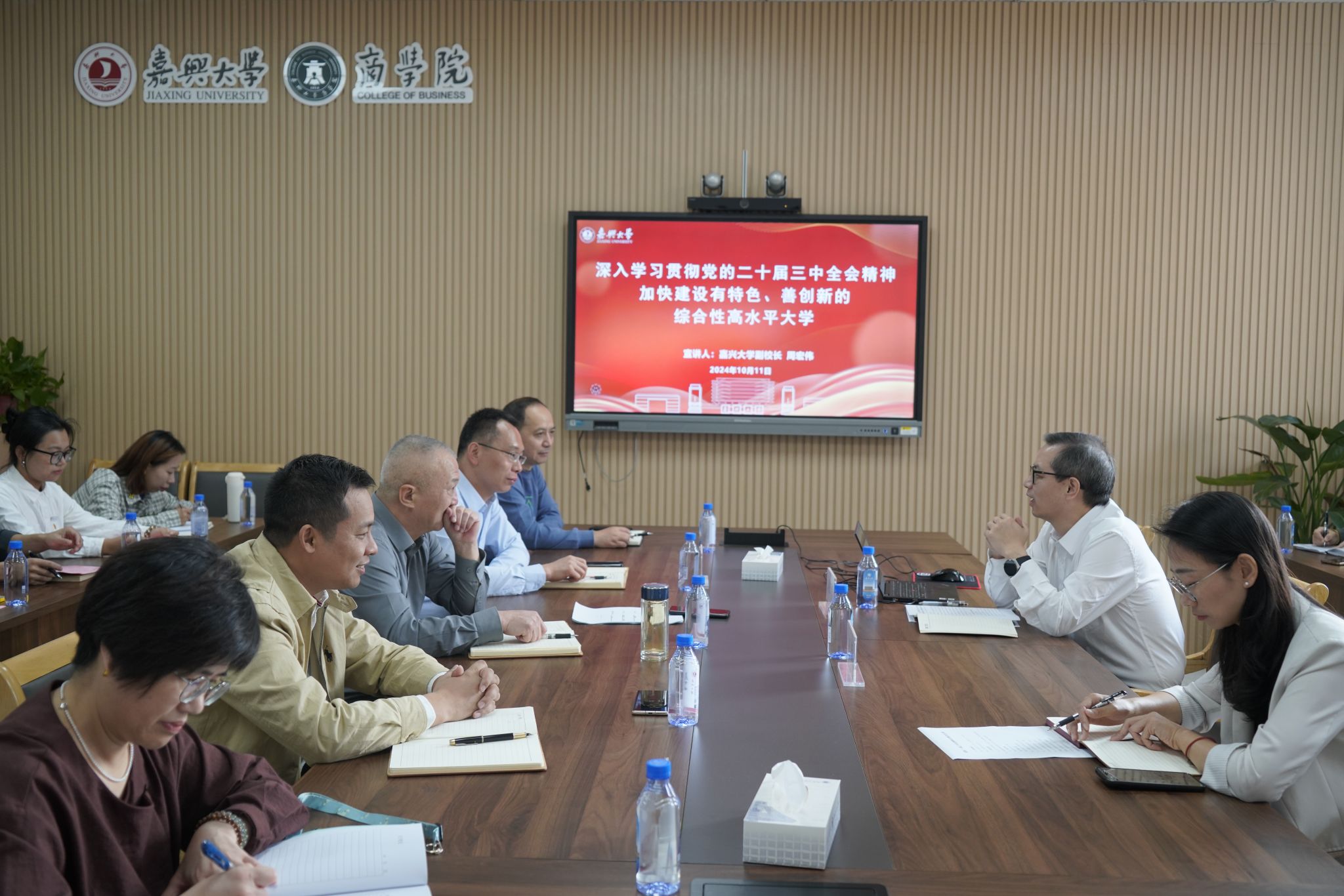 周宏伟指出,党的二十届三中全会是在以中国式现代化全面推进强国建设、民族复兴伟业的关键时期召开的一次十分重要的会议,要把学习贯彻党的二十届三中全会精神和省委十五届五次全会精神结合起来,奋力推进有组织高质量发展综合改革,加快建设有特色、善创新的综合性高水平大学。