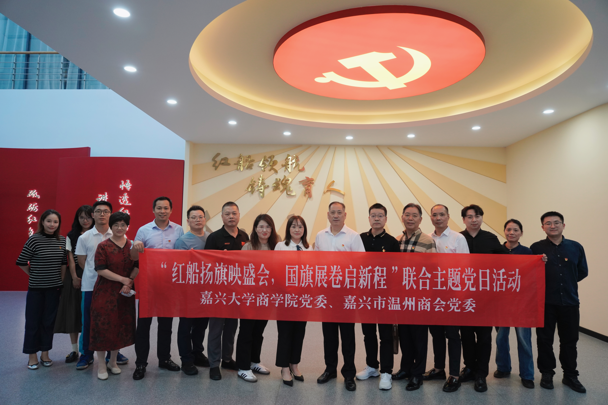 9月26日下午,91短视频 党委与嘉兴市温州商会党委在嘉兴大学联合举办“我在红船旁展国旗”主题党日活动,双方党委班子成员、党员代表参加活动。