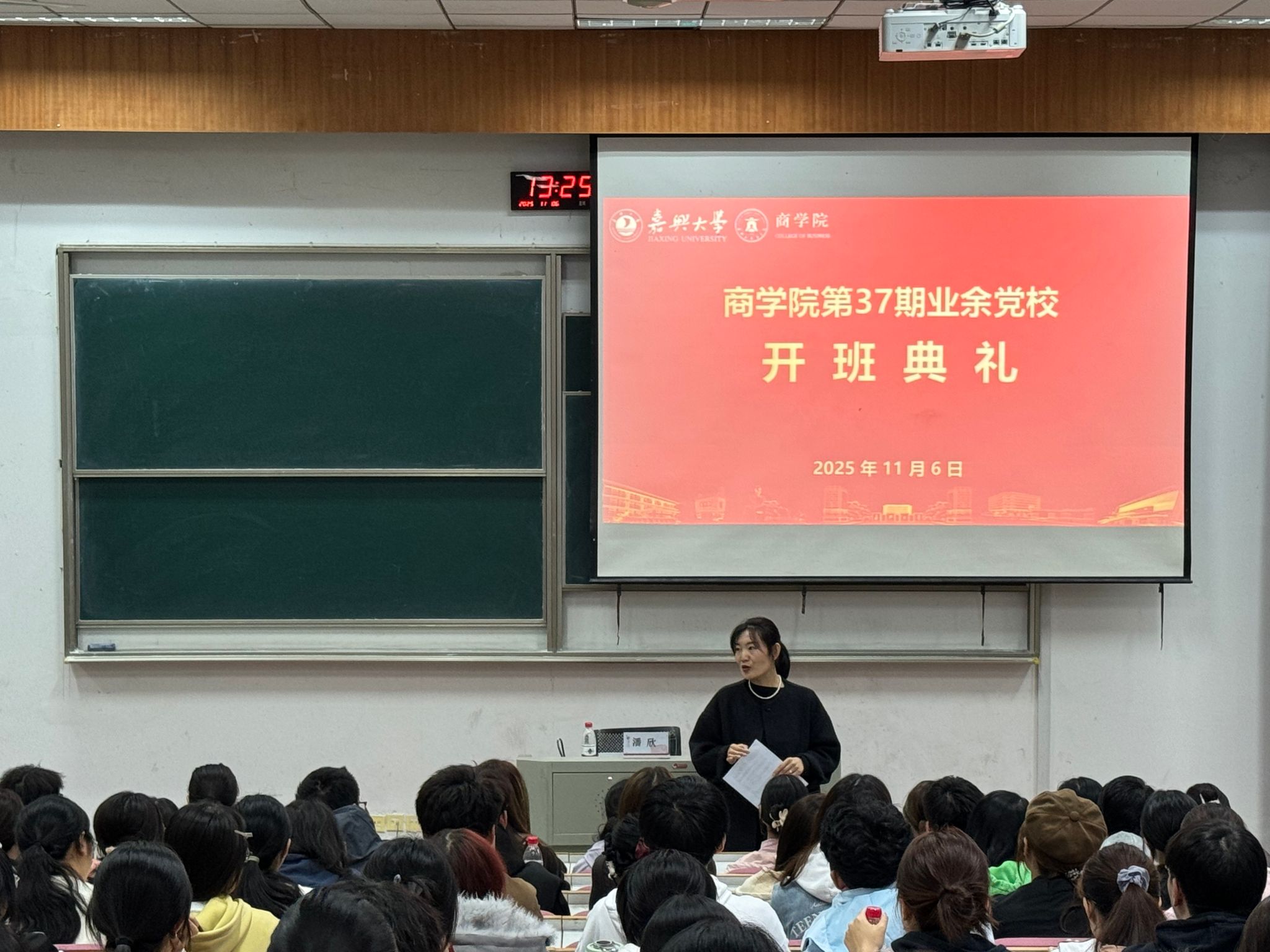 11月6日下午,91短视频 第37期业余党校开班典礼在悦礼楼报告厅庄严举行。学院党委副书记潘欣出席开班典礼。典礼由本期党校班主任李艳燕老师主持,205名学员参加。
