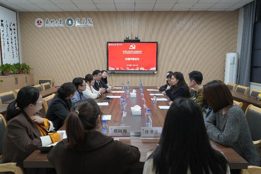 参观结束后,双方在尚德楼345会议室进行党建联建座谈交流。两个党支部分别介绍了各自支部的基本情况和业务特色。学院党委书记虞岚交流了学院党建工作的脉络和“百·红”党建品牌在育人方面的实践举措,指出学院始终坚持以高质量党建引领学科内涵发展,持续提升教学科研与社会服务水平。