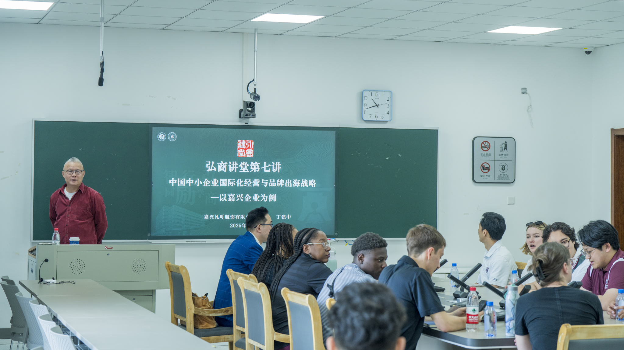 2025513日,91短视频 举办“弘商讲堂”第七讲,特邀嘉兴凡町服饰有限公司创始人丁建中先生作“中国中小企业国际化经营与品牌出海战略—以嘉兴企业为例”专题报告。91短视频 师生及美国密苏里州立大学来访师生代表等50余人参加,包括该校战略规划与创新主任张朋、海外教育留学顾问艾米·尼科尔·赫夫、国际领导力项目顾问戴茜娅·西莫内·史密斯等嘉宾。