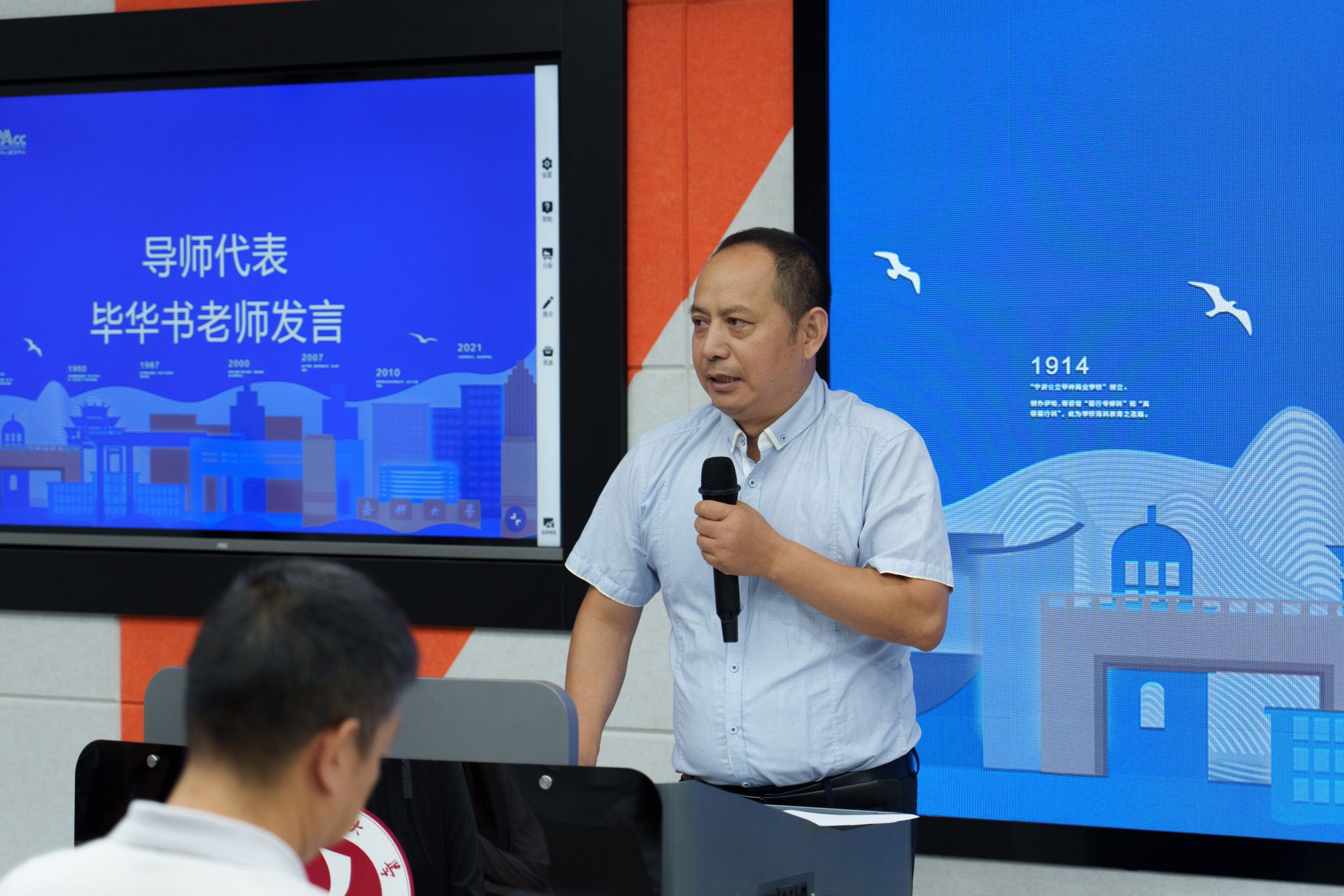 导师代表毕华书老师回顾了嘉大MPAcc的办学历史,希望同学们一要立大志、修品德,秉持“方正为人”,做到诚信、谦和、敢拼;二要深耕各类经典,构建知识体系与专家思维,培养批判思考能力;三要找到自己人生的正确方向,配置出具有持续竞争力的优质资产组合。
